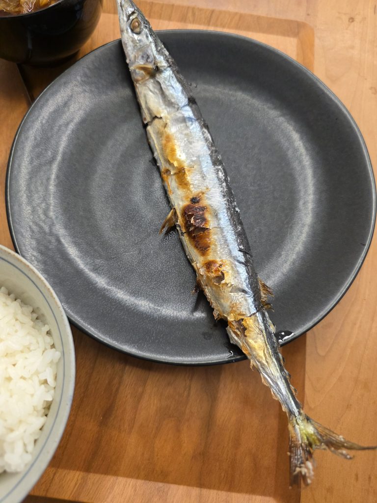 秋刀魚。今年は豊漁だそうで私もいただきました!丁寧に塩水で洗ってから降り塩をして焼きました。ふっくらと美味しかったです。
