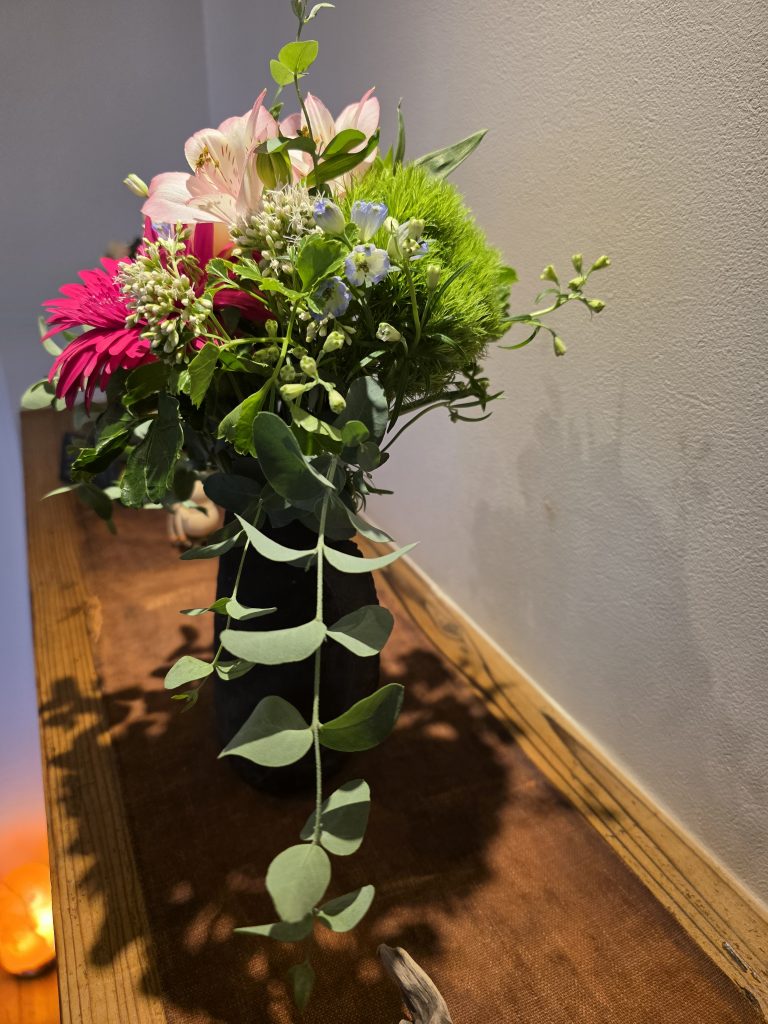 ユーカリの枝を垂らした使い方になっていて、こんなのも動きがあっていいですね。ご来院の際はじっくりご覧くださいね。