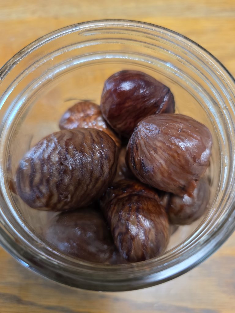 もうひとつは栗。それも栗の渋皮煮!大仙堂の患者さんがたいへんな下処理をしてコトコト煮て持ってきてくださいました。